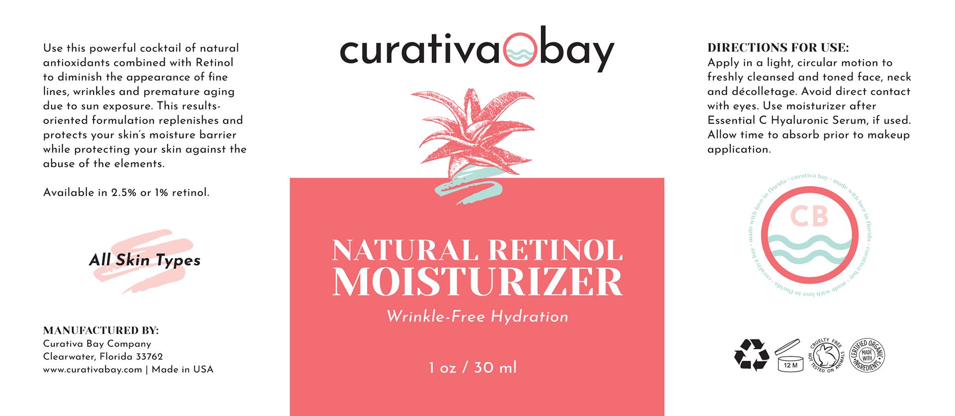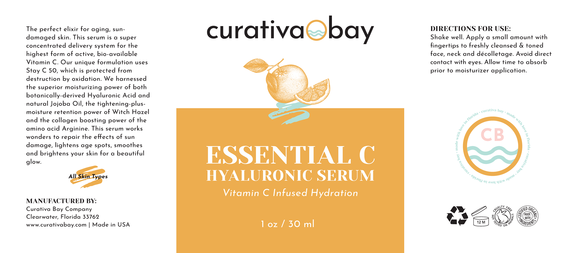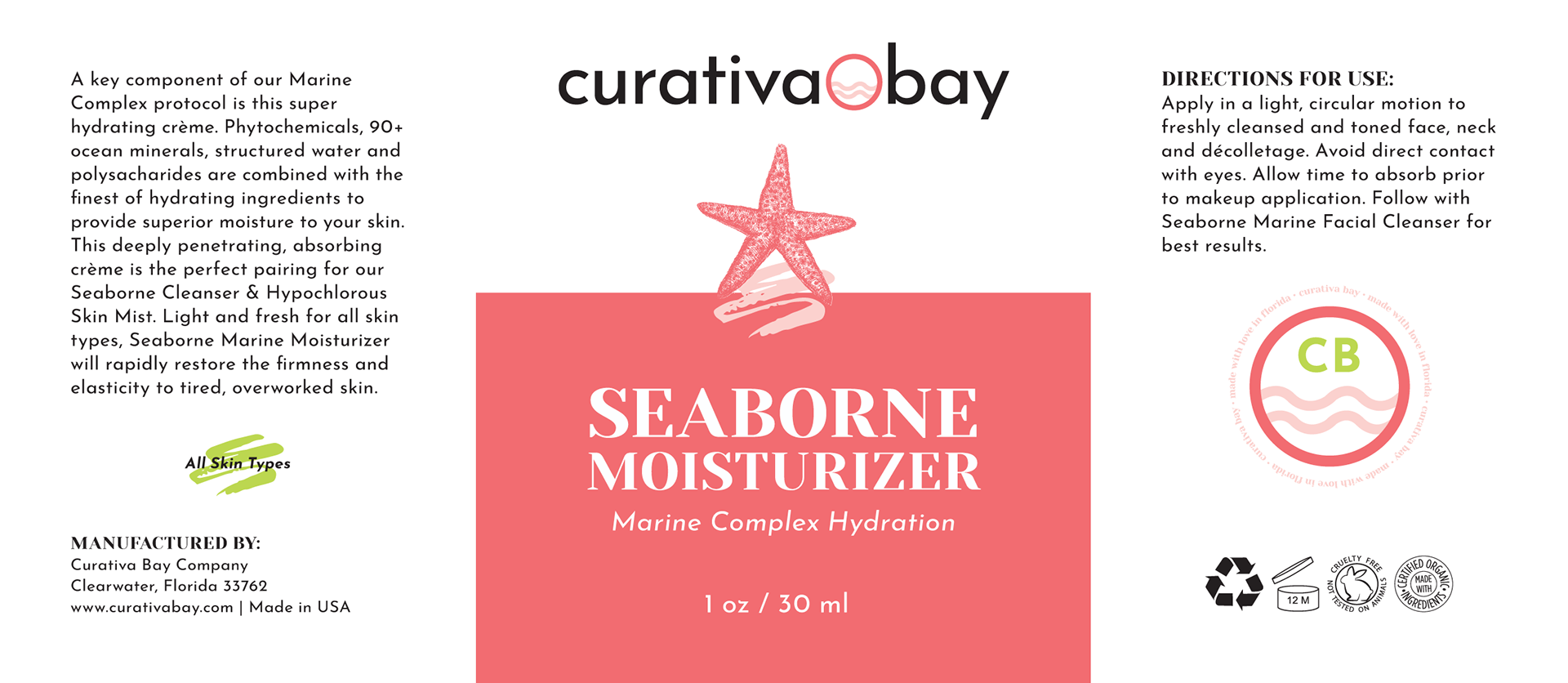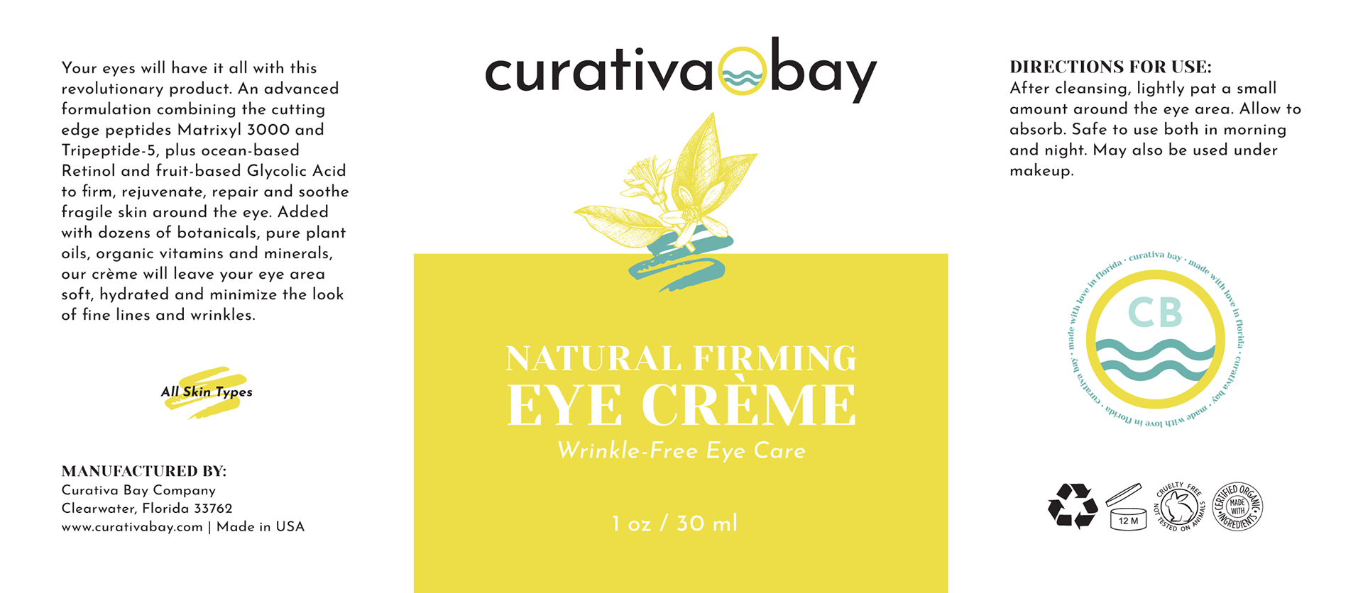 Original product label designs I was contracted to design for a local FL-based skincare company - Curativa Bay - who wanted to re-design all their labels.