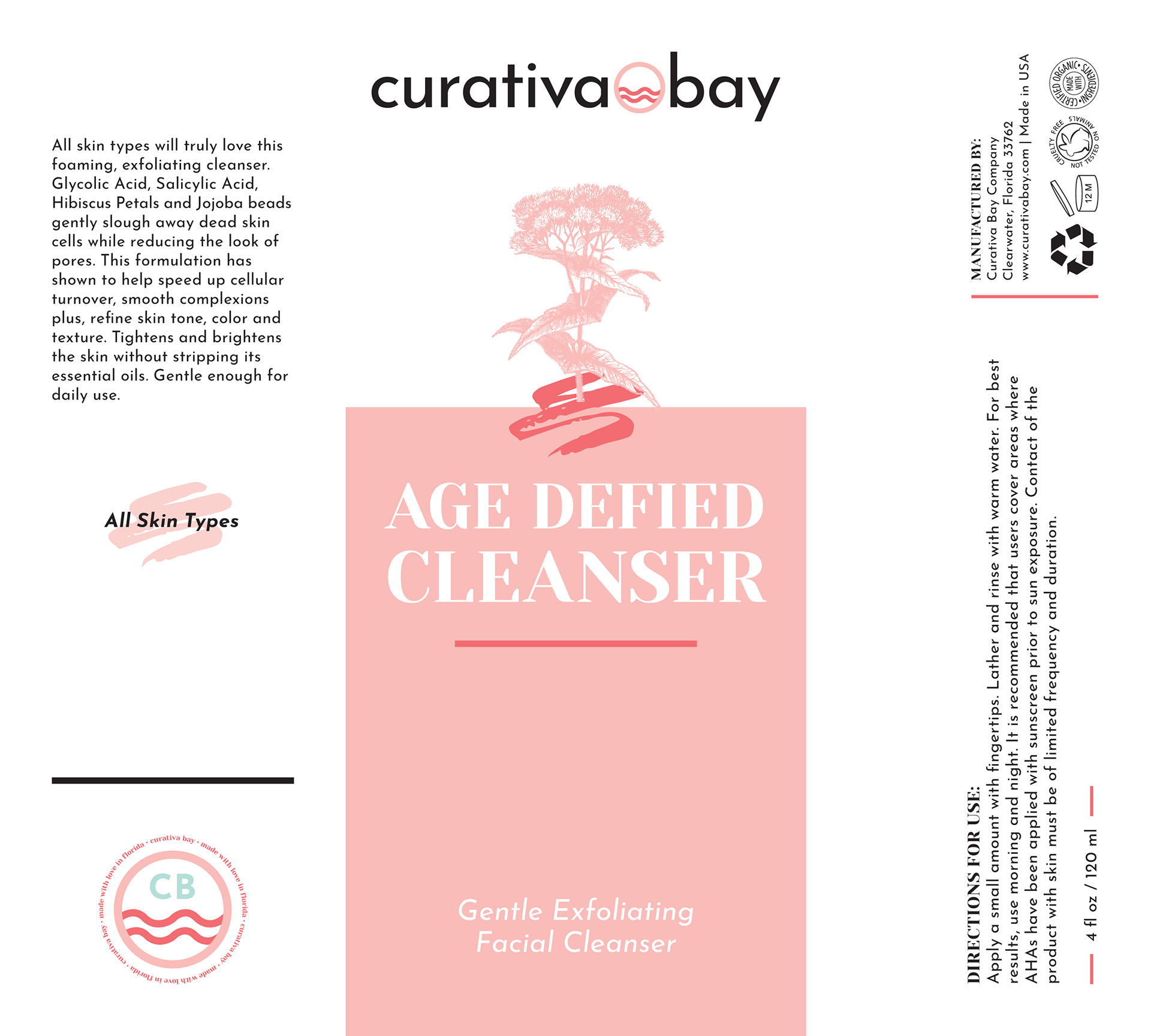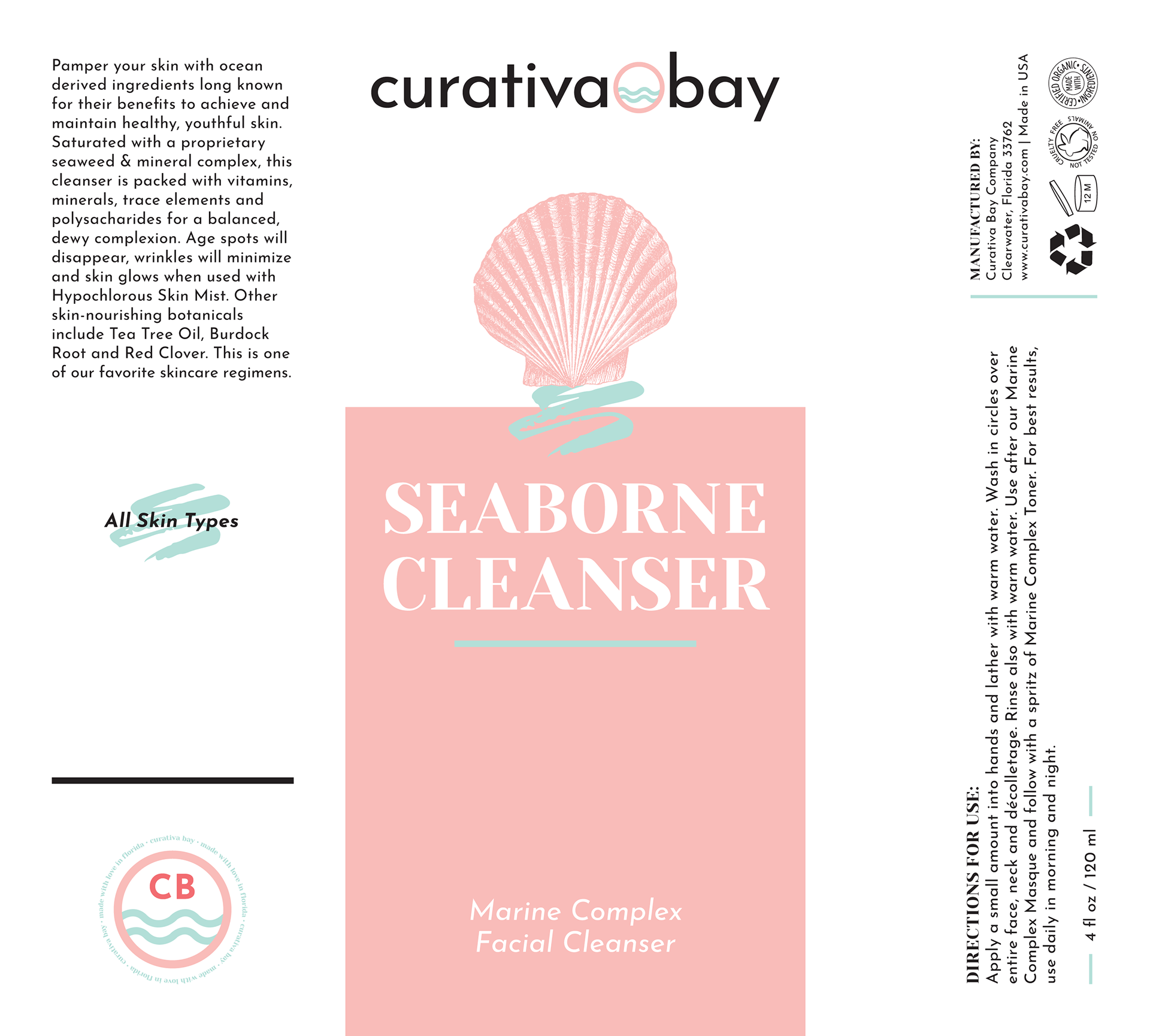 Curativa Bay skincare product label re-design project. I also was hired to re-design their logo and color palette.